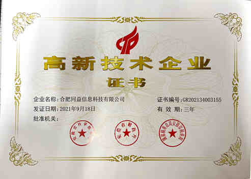 熱烈祝賀我司獲得國家級高新技術企業證書